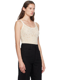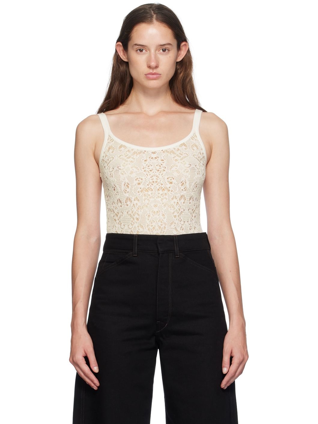 Virgin wool- and silk-blend lace bodysuit. · Sleeveless · Scoop neck · Hook-eye fastening at bottom Supplier color: Ivory 65% virgin wool, 30% silk, 5% polyamide. Made in Italy 242854F358000