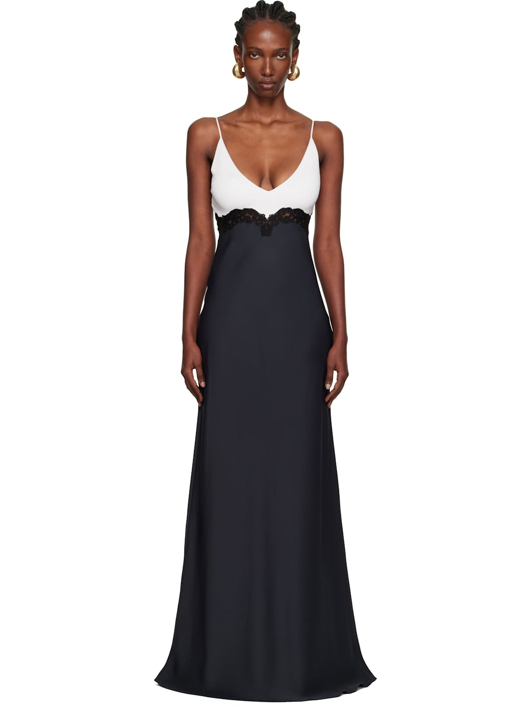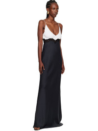 Knit silk and cady maxi dress. · Paneled construction · Plunging V-neck · Floral lace trim at front and back waist · Concealed zip closure at side seam · Fixed spaghetti straps Supplier color: Dark navy Body 1: 100% silk. Body 2: 57% cotton, 30% polyamide, 8% viscose, 5% polyester. Made in Italy 252854F055003