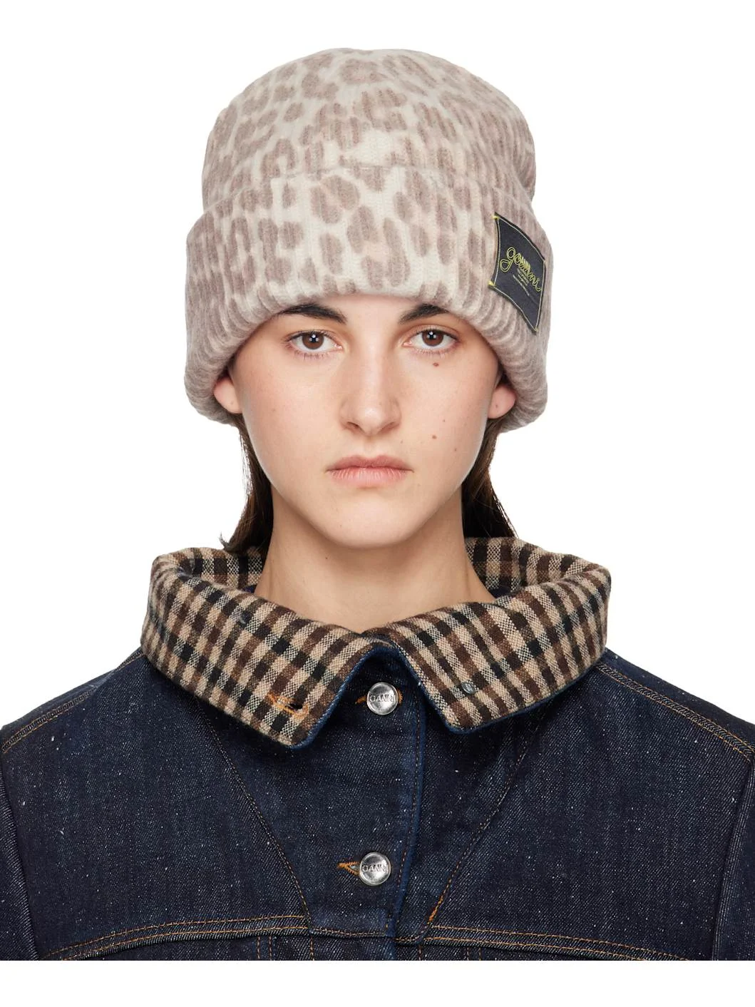 Rib-knit recycled wool-blend beanie. · Leopard pattern throughout · Logo patch at rolled brim Supplier color: Leopard 45% wool, 35% recycled wool, 20% recycled polyamide. Made in Moldova 252144F014002