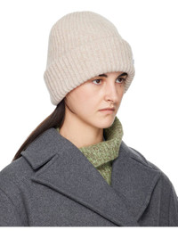 Beige Oversized Wool Rib Knit Beanie