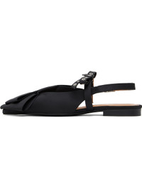 Satin flats in black. · Bow applique at pointed toe · Bow with grommets and logo hardware at vamp · Pin-buckle strap at vamp · Pin-buckle slingback strap · Logo embossed at padded footbed · Buffed faux-leather lining · Stacked faux-leather heel with rubber injection · Rubber sole · Logo-engraved silver-tone hardware Supplier color: Black Upper: textile. Sole: rubber. Made in Portugal 251144F118014