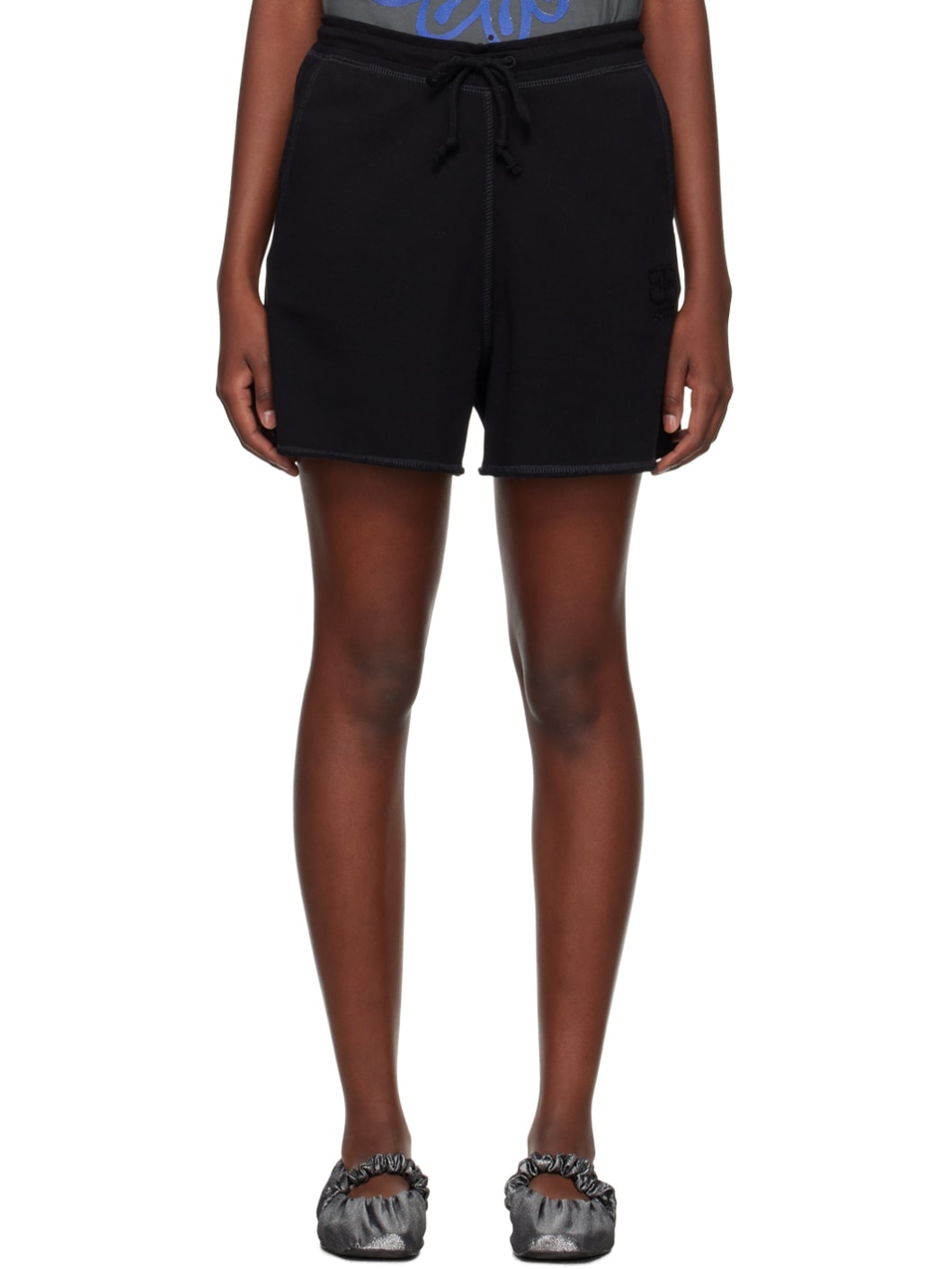 Organic cotton French terry shorts. Overlock stitching throughout. · Drawstring at elasticized waistband · Two-pocket styling · Logo graphic embroidered at front · Rolled raw edge at cuffs Supplier color: Black 100% organic cotton. Made in Portugal 232144F088009