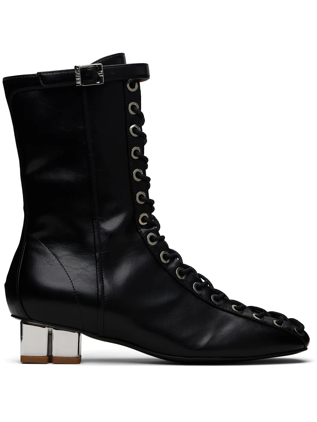 Ankle-high Oleatex™ buffed faux-leather boots. · Square toe · Lace-up closure · Pin-buckle strap at collar · Zip closure at inner side · Block heel with rubber injection · Faux-leather sole with rubber injection · Heel: H1.25" Supplier color: Black Upper: synthetic. Sole: synthetic, rubber. Made in Brazil 252144F113001