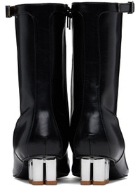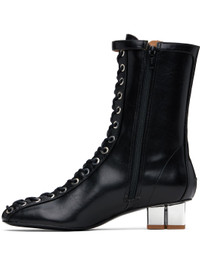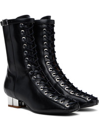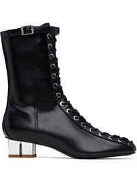 Ankle-high grained Oleatex® faux-leather boots in black. · Square toe · Lace-up closure · Pin-buckle strap at collar · Zip closure at inner side · Silver-tone logo kitten heel · Faux-leather sole with rubber injections · Logo-engraved silver-tone hardware · Heel: H1.5" Supplier color: Black Upper: synthetic. Sole: synthetic, metal, rubber. Made in Brazil 251144F113003