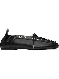 Crinkled Oleatex® faux-leather ballerina flats in black. · Square toe · Lace-up closure · Metal eyelets at collar · Pull-loop with logo hardware at elasticized heel collar · Buffed faux-leather lining · Polished faux-leather sole with rubber injections · Silver-tone hardware Supplier color: Black Upper: synthetic. Sole: synthetic, rubber. Made in Brazil 251144F118021