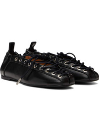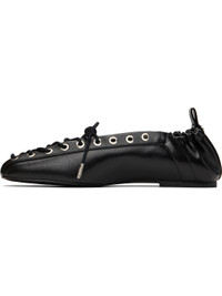 Black Oleatex Lace-Up Ballerina Flats