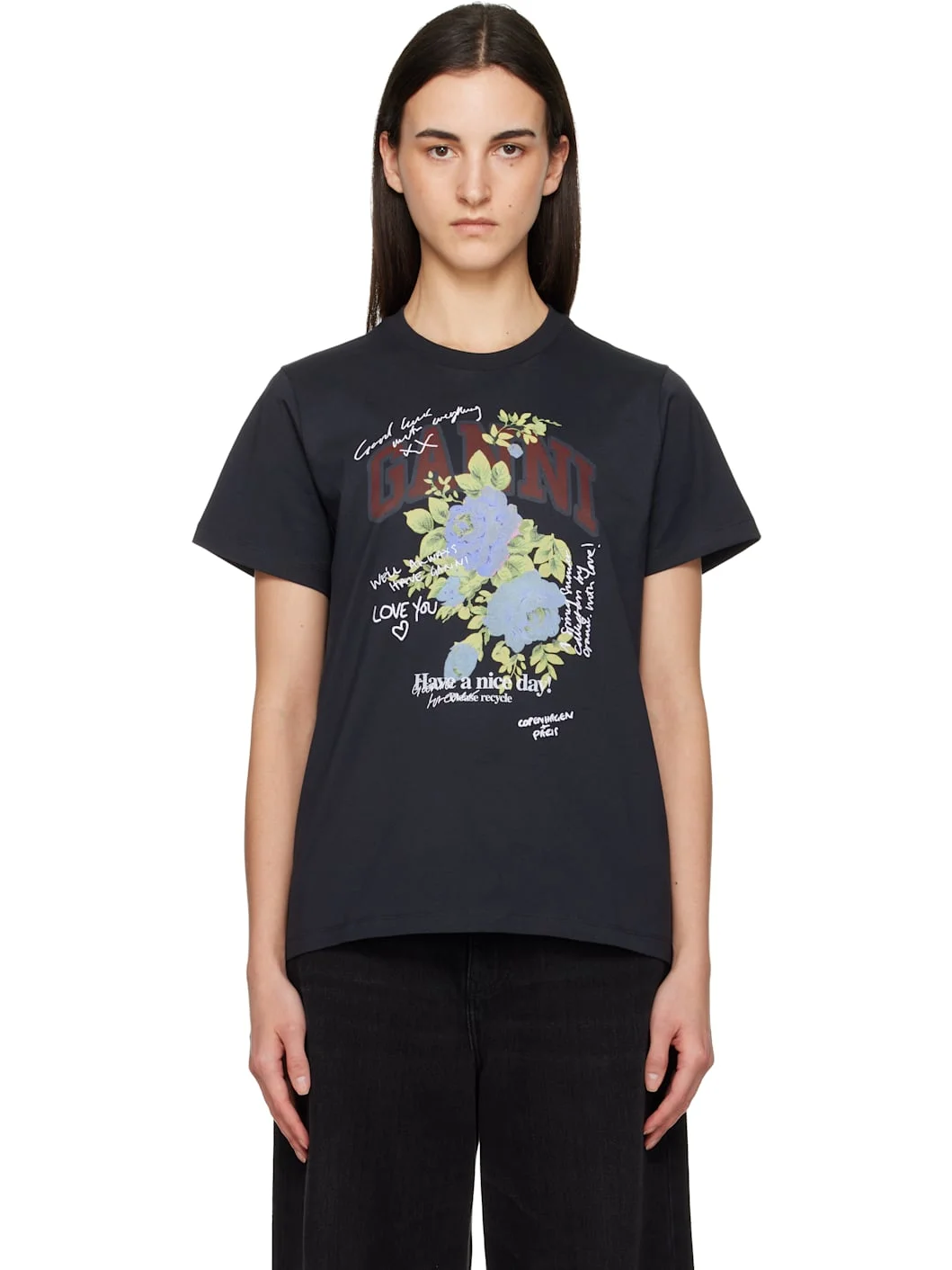 Organic cotton jersey T-shirt. · Rib-knit crewneck · Logo, graphic, and text printed at front · Text embroidered at front Supplier color: Phantom 100% organic cotton. Made in Portugal 252144F110028