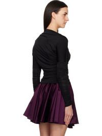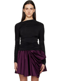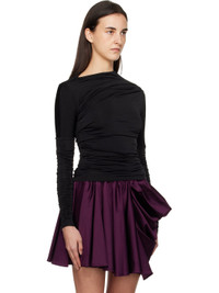 Stretch viscose jersey T-shirt. · Ruching throughout · Slim-fit · Asymmetrical construction · Boat neck · Jersey lining Supplier color: Black Body: 95% viscose, 5% elastane. Lining: 90% recycled polyester, 10% elastane. Made in Turkey 252144F110026