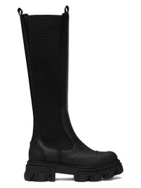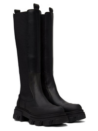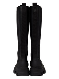 Knee-high buffed recycled leather boots in black. · Rubber cap toe · Pull-loops at collar · Elasticized gusset at sides · Webbing trim and logo bonded at back · Logo embossed at heel · Textured rubber midsole · Lugged rubber sole · Heel: H1.5" Supplier color: Black Upper: recycled leather. Sole: rubber. Made in Portugal 242144F115000