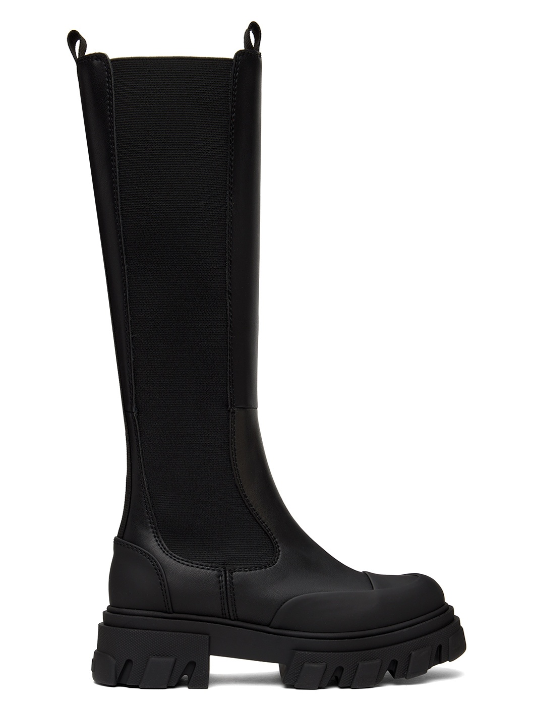 BLACK STITCH CLEATED HIGH CHELSEA BOOTS