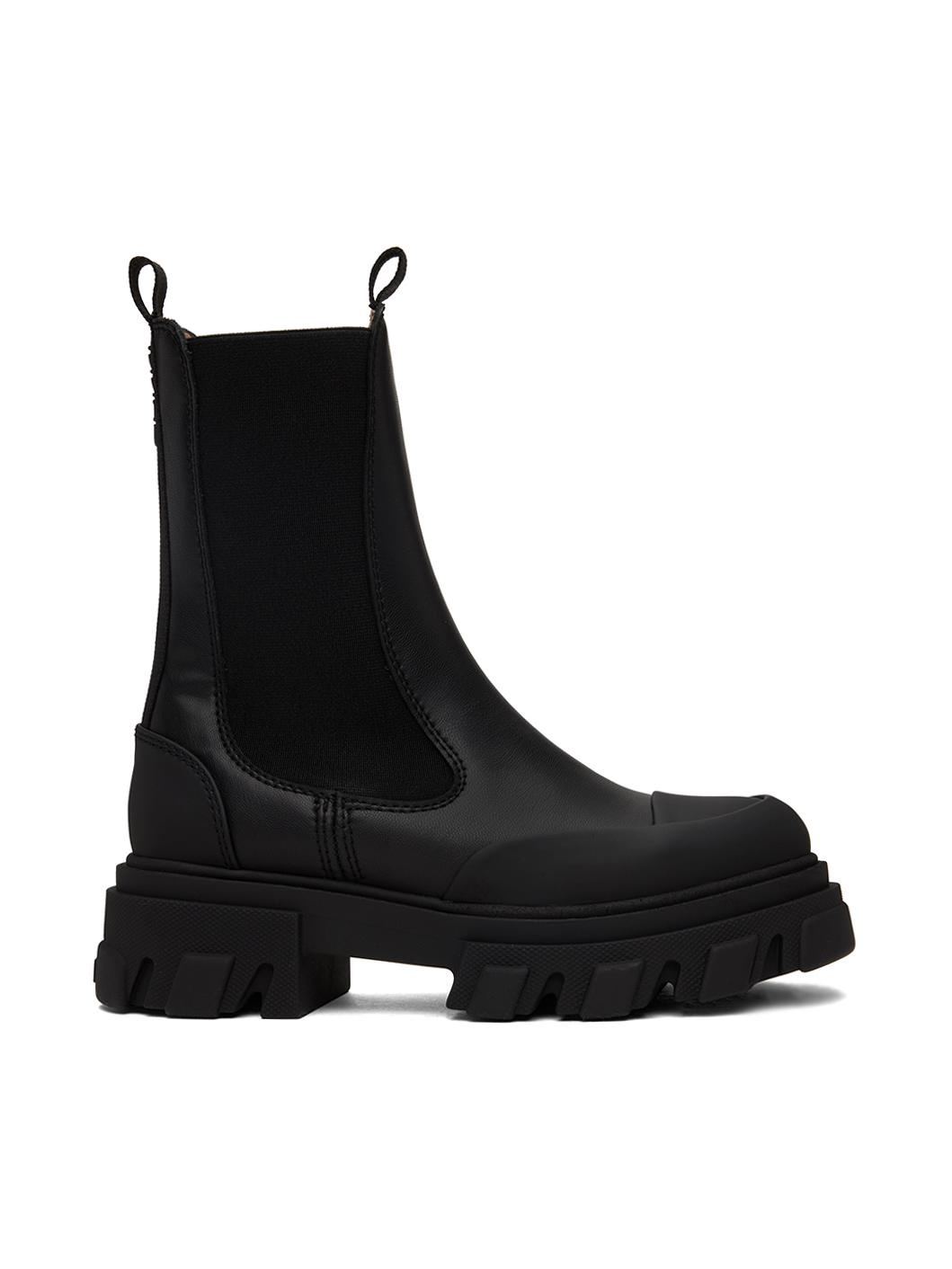 Black Stitch Cleated Mid Chelsea Boots