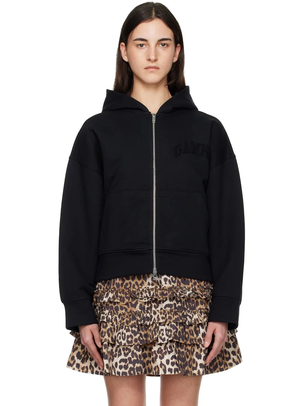 Organic cotton French terry hoodie. · Two-way zip closure · Terrycloth logo applique at chest · Patch pockets at waist · Dropped shoulders · Logo-engraved silver-tone hardware Supplier color: Black/Black 100% organic cotton. Made in Portugal 252144F097004