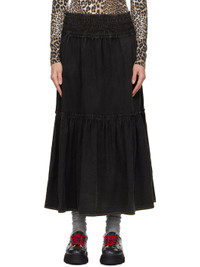 Organic cotton poplin maxi skirt. · Fading throughout · Tiered construction · Smocked elasticized waistband · Contrast stitching in orange Supplier color: Black 100% organic cotton. Made in India 252144F093004