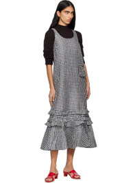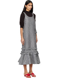 Crinkled recycled polyester taffeta midi dress. · Check pattern throughout · Scoop neck · Zip and flap pocket at front · Gathering and ruffled trim at hem · Self-tie fastening at low back · Zip closure at back · Logo-engraved silver-tone hardware Supplier color: Black 100% recycled polyester. Made in Turkey 252144F055009