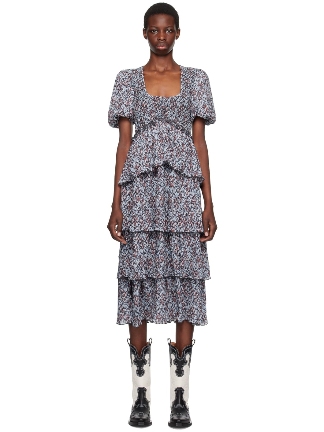 Recycled polyester crepe dress. Pleats, smocking, ruffles, and floral pattern printed throughout. · Tiered construction · Scoop neck · Puff Sleeves Supplier color: Phantom 100% recycled polyester. Made in India 242144F054002