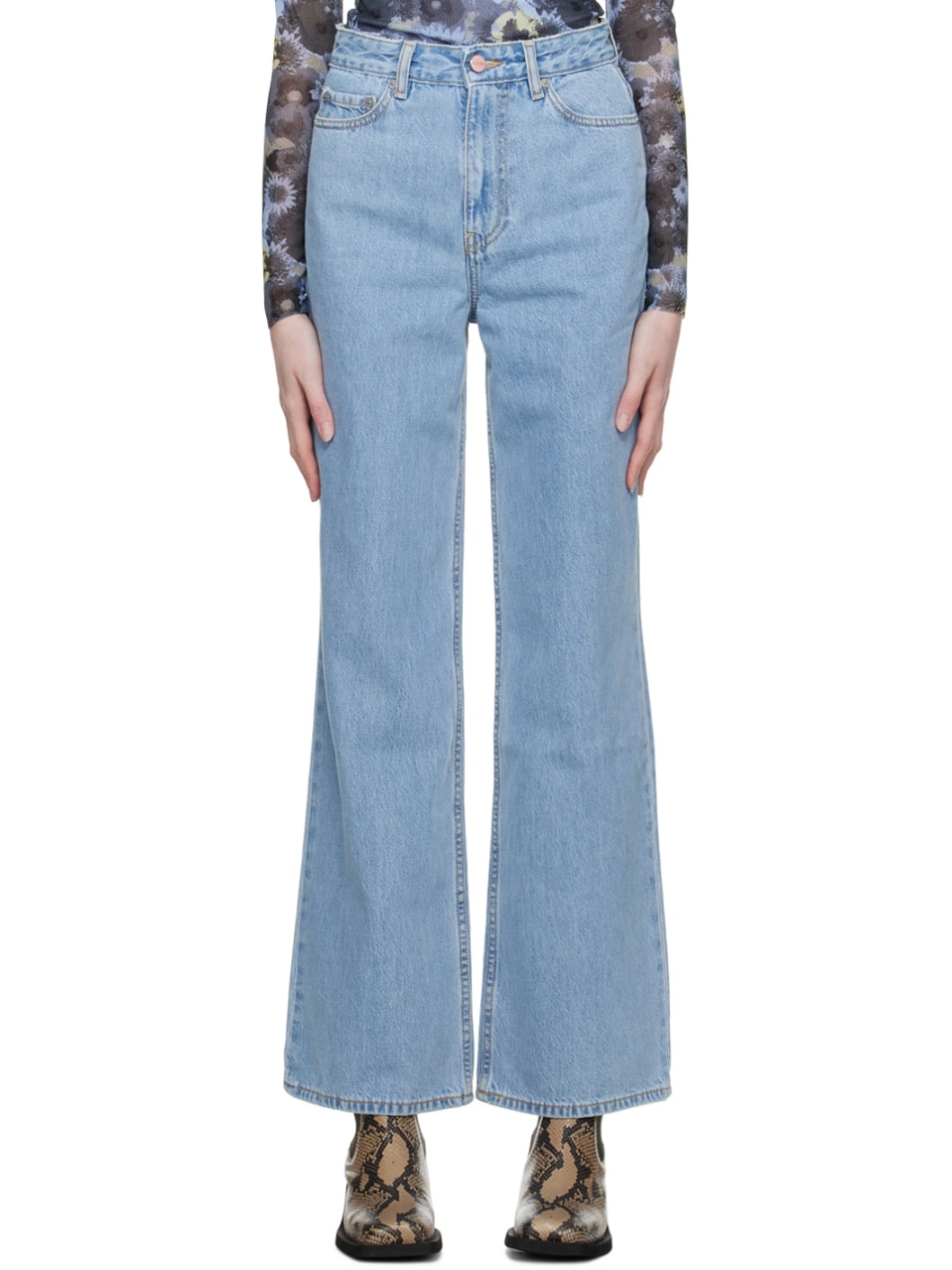Non-stretch organic cotton denim jeans. · Belt loops · Five-pocket styling · Zip-fly · Textile logo patch at back · Logo-engraved silver-tone hardware · Contrast stitching in tan Supplier color: Light blue stone 100% organic cotton. Made in Turkey 231144F069022