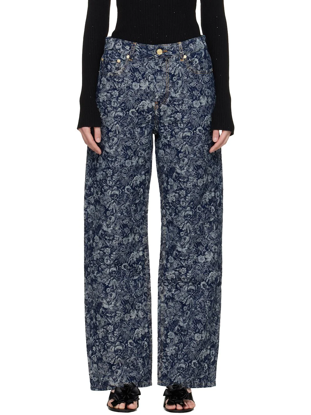 Cotton gobelin jeans. · Jacquard floral pattern throughout · Straight-leg · Belt loops · Five-pocket styling · Zip fly · Logo patch at back waistband · Logo-engraved gold-tone hardware · Contrast stitching in tan Supplier color: Rinse Body: 100% organic cotton. Trim: 80% polyester, 20% cotton. Made in Tunisia 261144F069015