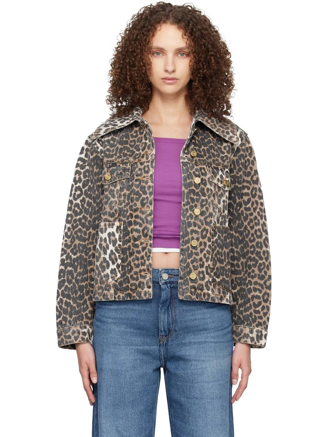 Non-stretch organic cotton denim jacket. · Leopard pattern printed throughout · Spread collar · Button closure · Flap pockets at chest · Patch pockets at waist · Buttoned barrel cuffs · Inverted pleat at back yoke · Logo-engraved gold-tone hardware Supplier color: Almond Milk 100% organic cotton. Made in Turkey 261144F060001