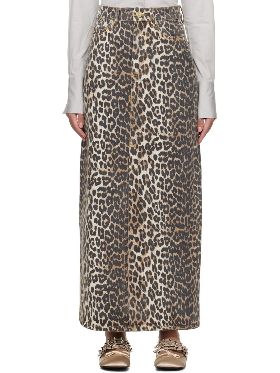 Stretch organic cotton denim maxi skirt. Logos and leopard pattern printed throughout. · Belt loops · Five-pocket styling · Zip-fly · Central vent and front and back hem · Logo patch at back pocket · Logo-engraved gold-tone hardware · Contrast stitching in tan Supplier color: Leopard 99% organic cotton, 1% elastane. Made in Turkey 251144F093000