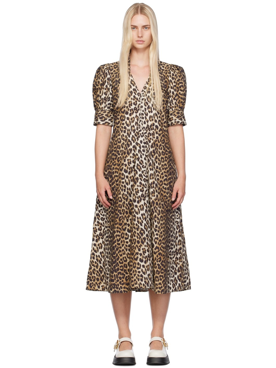 Organic cotton poplin dress. Leopard pattern printed throughout. · Spread collar at V-neck · Inverted box pleat at front and back · Seam pockets · Puff sleeves · Two-button barrel cuffs · Unlined Supplier color: Leopard 100% organic cotton. Made in India 242144F055010