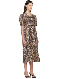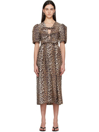 Brown Leopard Printed Cotton Midi Dress