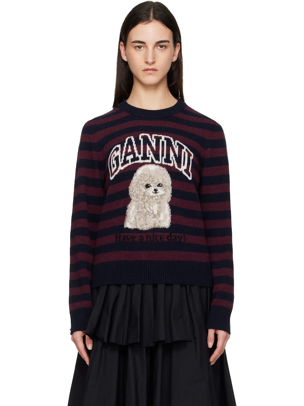 Burgundy Graphic Wool Mix Poodle Stripe Sweater