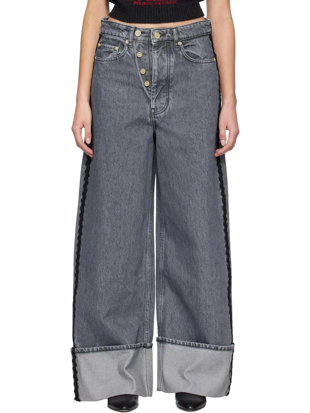 Non-stretch organic cotton denim jeans. · Fading throughout · Loose-fit, wide-leg · Mid-rise · Belt loops · Five-pocket styling · Double button fly · Rolled cuffs · Graphic trim at outseams · Logo patch at back waistband · Logo-engraved gold-tone hardware Supplier color: Slate Grey 100% organic cotton. Made in Turkey 261144F069005