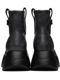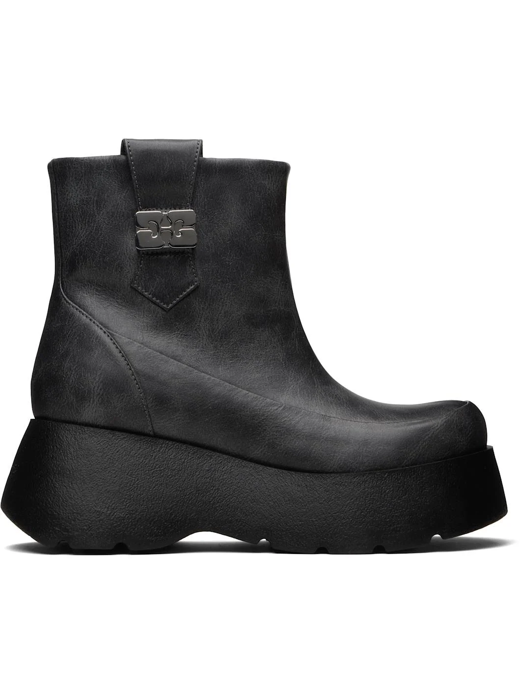 Ankle-high grained faux-leather boots. · Smudging throughout · Moc toe · Pull-loops at collar · Logo hardware at outer side · Grained faux-leather lining · Logo embossed at foam rubber platform midsole · Treaded rubber sole · Platform: H1.5" · Heel: H2.5" Supplier color: Ebony Upper: synthetic. Sole: rubber. Made in Portugal 252144F113006