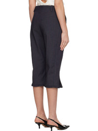 Stretch twill trousers. · Pinstripes throughout · Slim-fit · High-rise · Belt loops · Three-pocket styling · Zip fly · Cropped legs · Ruffles at vented cuffs Supplier color: Phantom Body: 62% recycled polyester, 32% viscose, 6% elastane. Pocket lining: 100% cotton. Made in Turkey 252144F087010