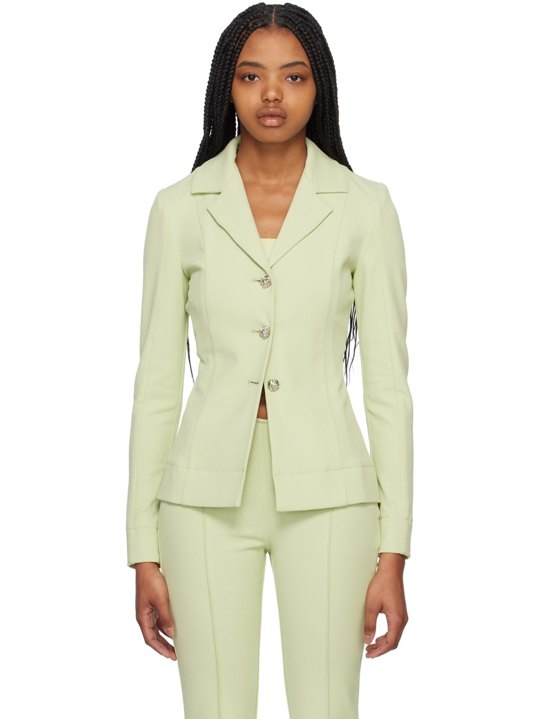 European Union Ecolabel-certified stretch LENZING™ Ecovero™ viscose- and recycled polyester-blend twill blazer. · Paneled construction · Notched lapel · Button closure · Unlined Supplier color: Lily green 69% recycled polyester, 29% viscose, 2% elastane. Trim: 100% cotton. Made in Turkey 231144F057018
