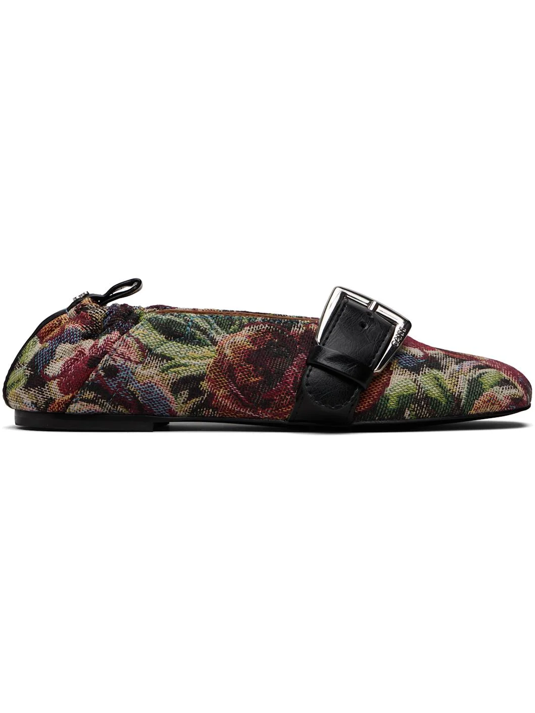 Brocade and buffed faux-leather ballerina flats. · Jacquard floral pattern throughout · Square toe · Pin-buckle strap at vamp · Elasticized heel collar · Logo hardware and pull-loop at heel · Buffed faux-leather lining · Faux-leather sole with rubber injections Supplier color: Tawny port Upper: textile, synthetic. Sole: synthetic, rubber. Made in Brazil 252144F118014