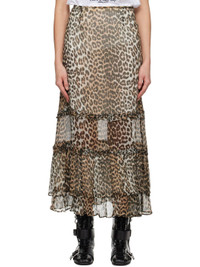 Viscose chiffon maxi skirt. · Leopard pattern and ruffle trim throughout · Tiered hem · Concealed zip closure at side · Removable crepe lining Supplier color: Leopard Body: 100% viscose. Lining: 100% recycled polyester. Made in India 252144F093002