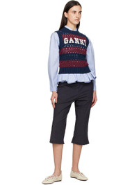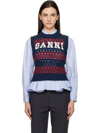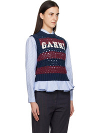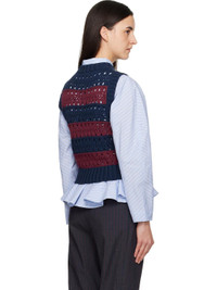 Open-knit recycled cotton-blend vest. · Intarsia stripes throughout · Rib-knit crewneck, hem, and armscyes · Jacquard logo at chest Supplier color: Multicolor 50% recycled cotton, 50% recycled polyester. Made in Moldova 252144F068001