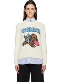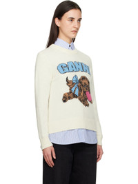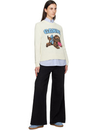 Knit wool- and recycled wool-blend sweater. · Rib-knit crewneck, hem, and cuffs · Intarsia logo and graphic at front Supplier color: Egret 45% wool, 35% recycled wool, 20% recycled polyamide. Made in Romania 252144F096020