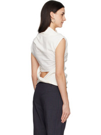 Stretch organic cotton poplin T-shirt. · Gathering and draping throughout · Asymmetrical neck · Zip closure at side · Cutout and twisted detailing at back Supplier color: Egret 97% organic cotton, 3% elastane. Made in India 252144F110024