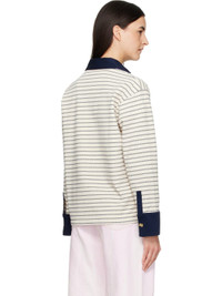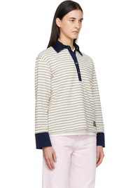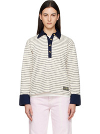 Organic cotton pique polo. · Stripes throughout · Twill spread collar, four-button placket, and barrel cuffs · Logo patch at front · Tennis tail hem · Dropped shoulders · Gold-tone logo hardware Supplier color: Egret 100% organic cotton. Made in Portugal 252144F108002