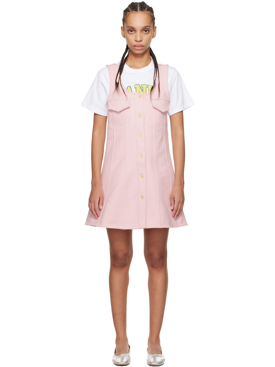 Organic cotton fleece minidress. · Scoop neck · Button closure · Flap pockets and logo embroidered at chest · Pinched seams at front and back · Fixed shoulder straps · Gold-tone logo hardware Supplier color: Chalk pink 100% organic cotton. Made in Portugal 251144F052019