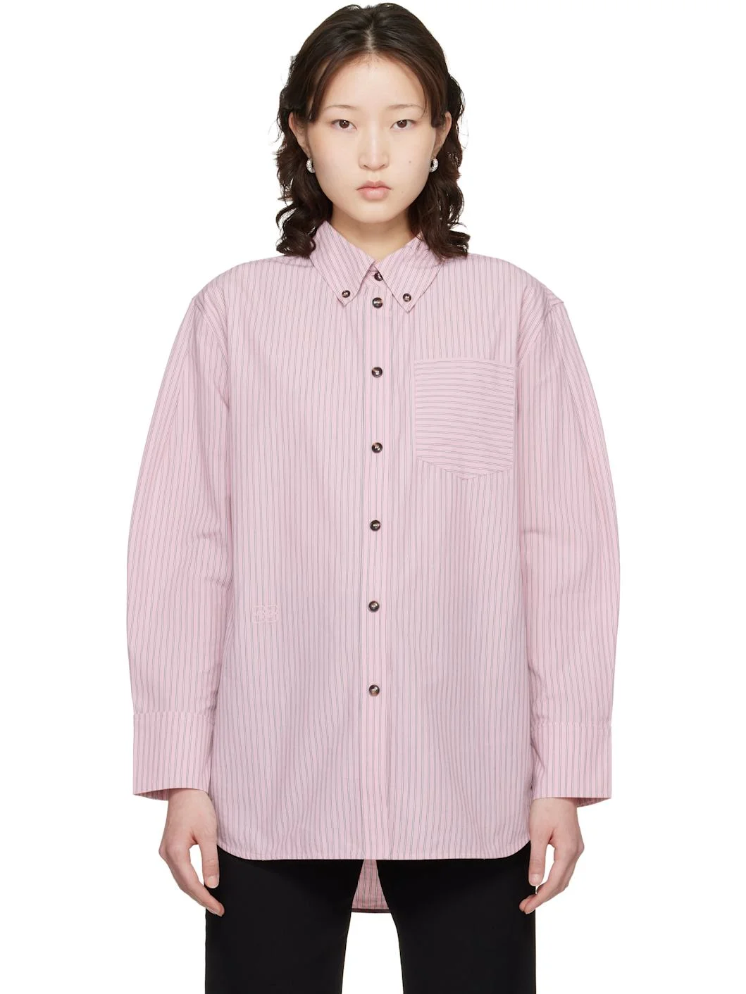 Organic cotton poplin shirt. · Stripes throughout · Button-down spread collar · Button closure · Patch pocket at chest · Logo embroidered at front · Shirttail hem · Dropped shoulders · Buttoned barrel cuffs · Box pleat at back yoke Supplier color: Chalk pink 100% organic cotton. Made in India 261144F109003