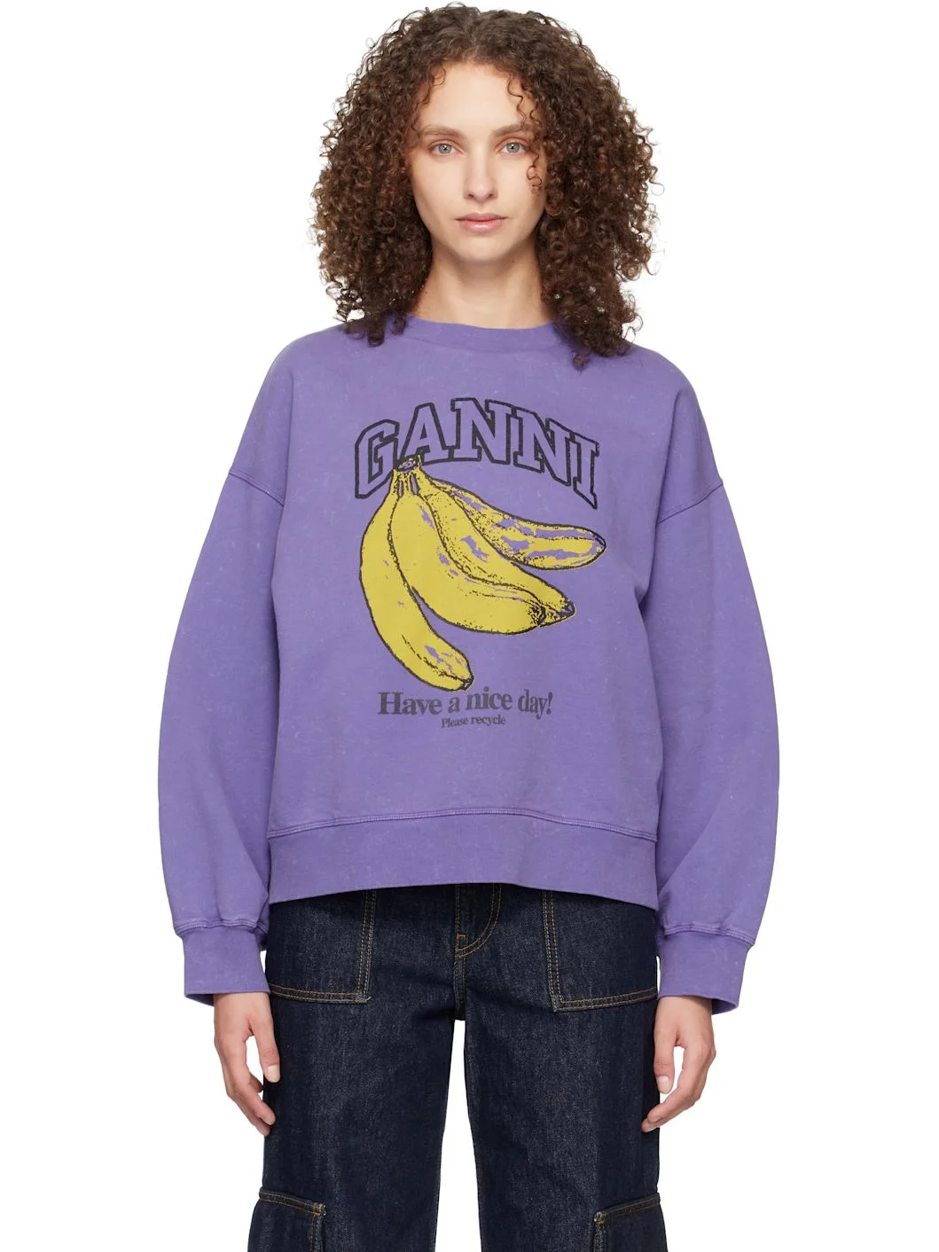 Organic cotton French terry sweatshirt. · Discoloration throughout · Rib-knit crewneck, hem, and cuffs · Logo, graphic, and text printed at front · Dropped shoulders Supplier color: Passion Flower Body: 100% organic cotton. Trim: 95% organic cotton, 5% elastane. Made in Portugal 261144F096005