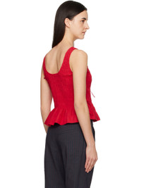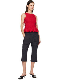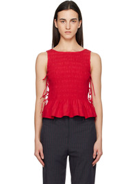 Organic cotton poplin blouse. · Smocking throughout · Slim-fit · Square neck · Peplum hem · Self-tie fastening at open side seams · Low back Supplier color: Racing red 100% organic cotton. Made in India 252144F111012