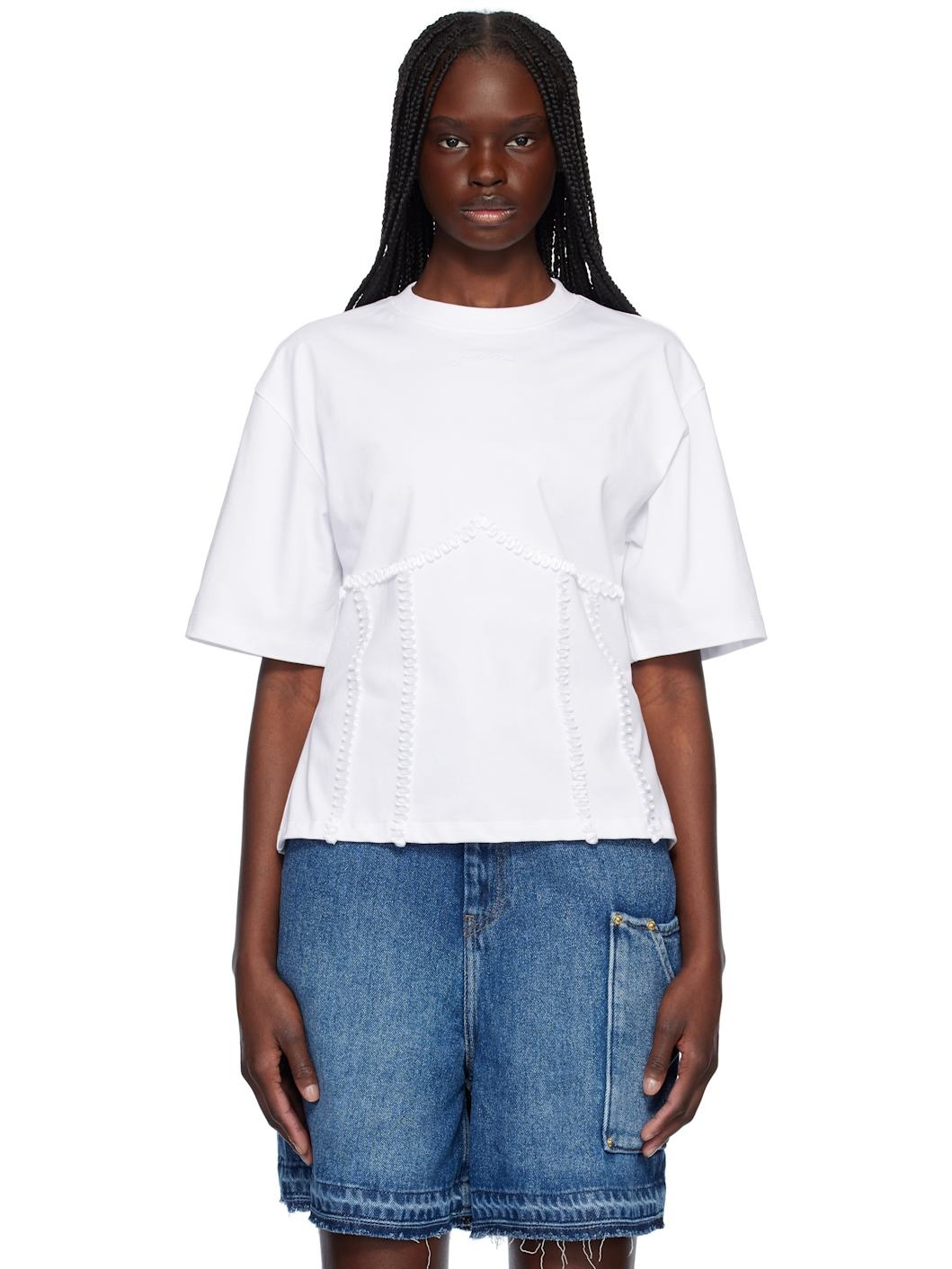 Organic cotton jersey T-shirt. · Rib-knit crewneck · Logo embroidered at chest · Textured satin trim at front · Dropped shoulders · Cutout and self-tie fastening at back Supplier color: Bright white 100% organic cotton. Made in Portugal 251144F110033