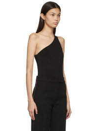 Sleeveless stretch nylon jersey single-shoulder bodysuit in black. · Open back · Press-stud closure at bottom Supplier color: Black 88% polyamide, 12% elastane. Made in France 221808F111001