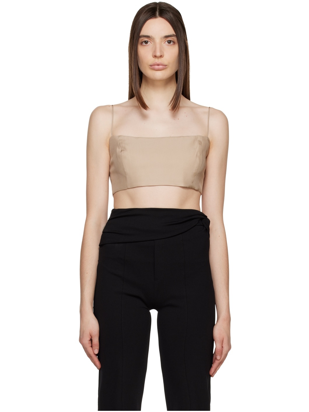Silk satin tank top. · Square neck · Adjustable hook-eye closure at back · Full satin lining Supplier color: Quicksand 100% silk. Made in Portugal 231329F073001