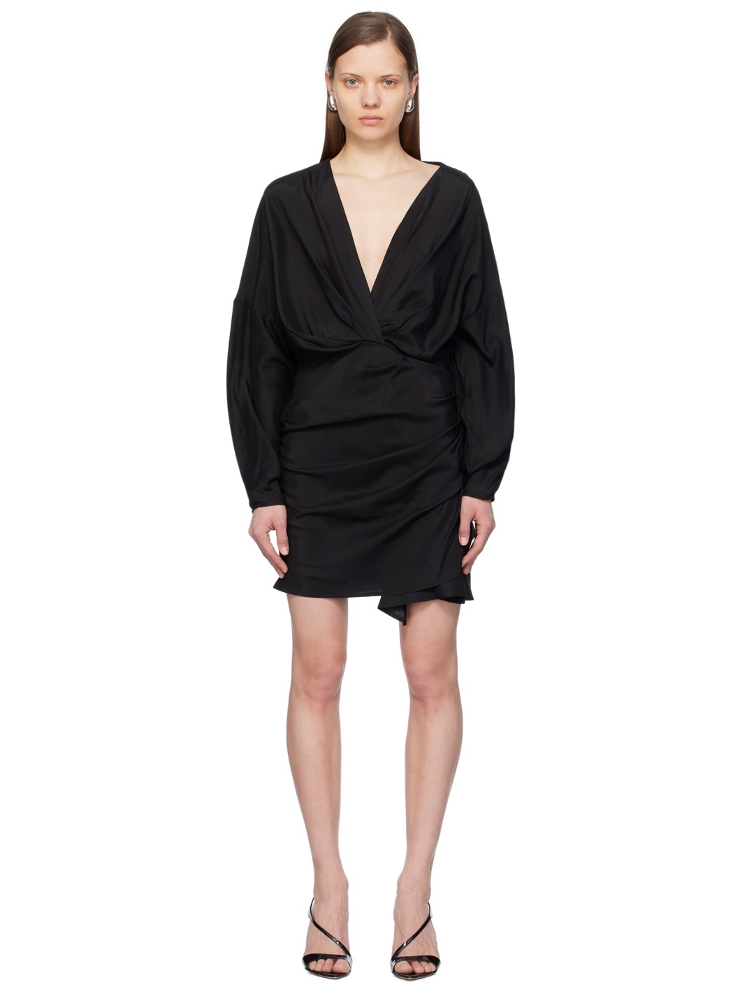 Silk crepe de chine dress. Pleats, draping, and gathering throughout. · Asymmetric construction · Plunging V-neck · Concealed zip closure at side seam · Dropped shoulders · Partial acetate- and cupro-blend satin lining Supplier color: Black Body: 100% silk. Lining: 60% acetate, 40% cupro. Made in Macedonia 241329F052013