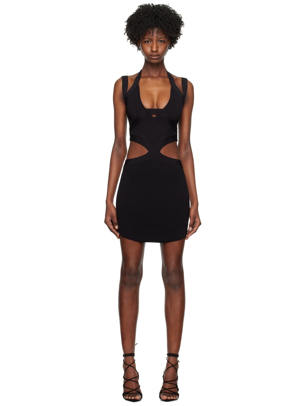 Knit rayon- and nylon-blend dress. Cutouts throughout. · Plunging V-neck · Fixed halter strap Supplier color: Black 65% rayon, 35% polyamide. Made in Turkey 232329F052010