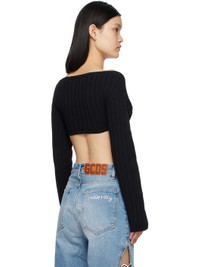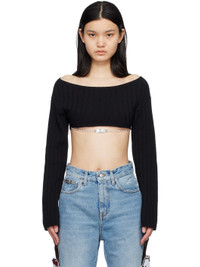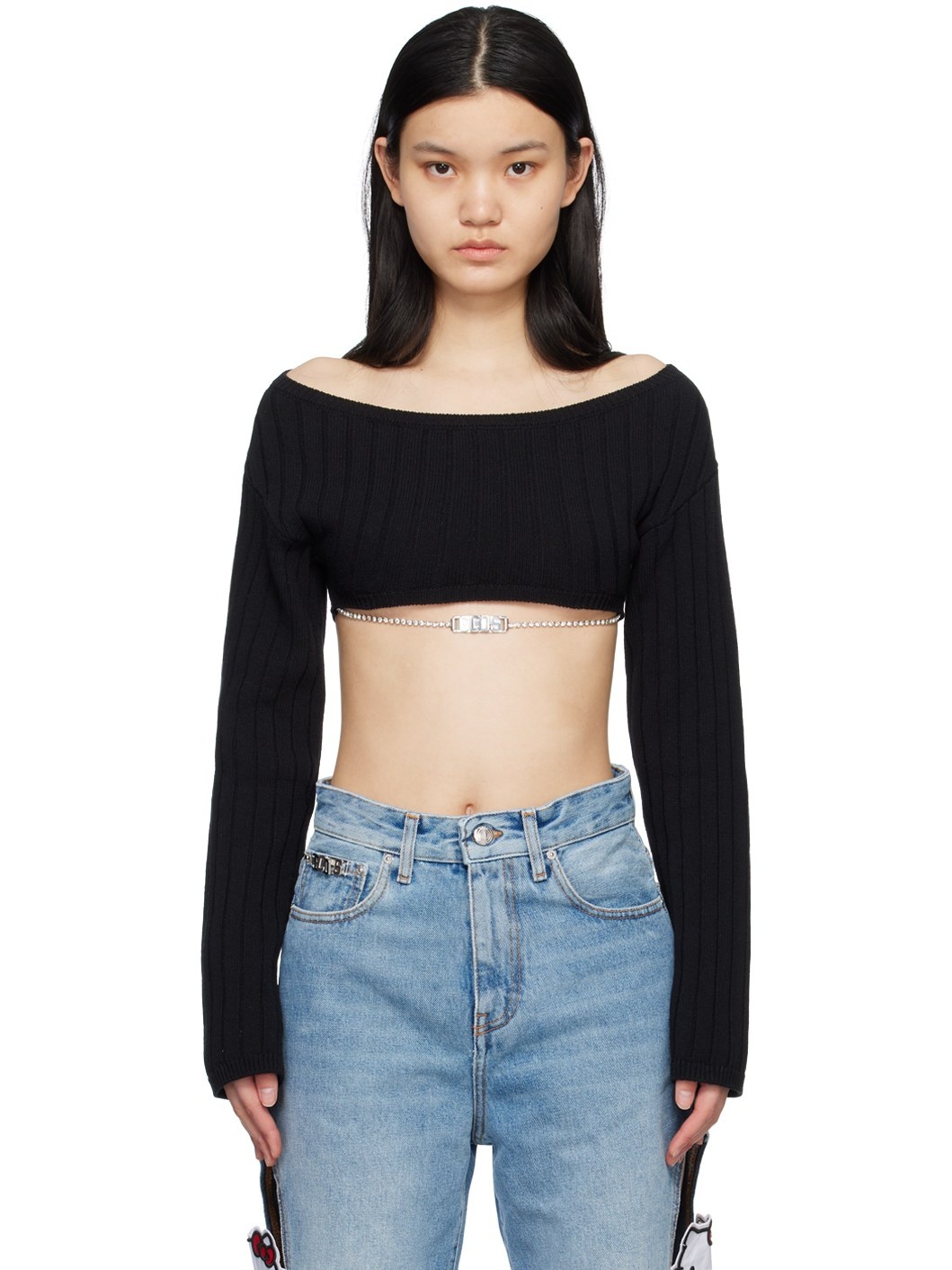 Rib knit cotton- and acrylic-blend sweater. · Boat neck · Cup chain with flip-clasp fastening at waist Supplier color: Black 50% cotton, 50% acrylic. Made in Italy 231308F096003