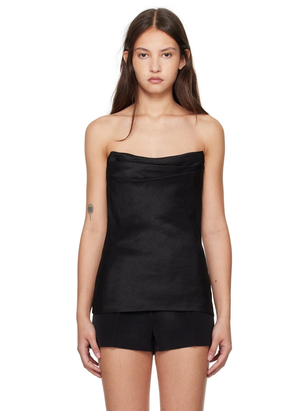 Linen- and viscose-blend twill tank top. · Draping at sweetheart neck · Underwire at cups · Concealed zip closure at back · Hook-eye fastening at interior Supplier color: Black 45% linen, 44% viscose, 11% polyamide. Made in Viet Nam 251749F111011