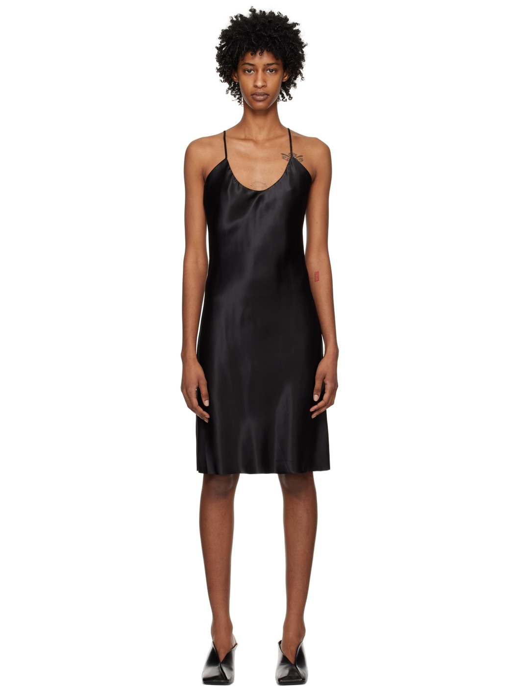 Cupro satin dress. · V-neck · Adjustable spaghetti straps Supplier color: Black 100% cupro. Made in Viet Nam 231749F052000