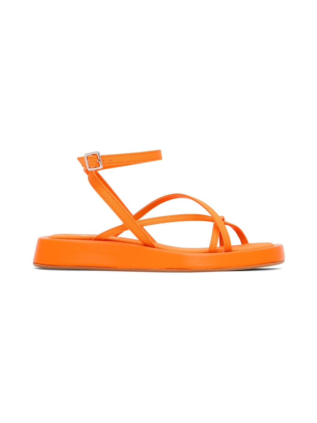 Canvas sandals in orange. · Open square toe · Criss-crossing straps at vamp · Wraparound pin-buckle ankle strap · Logo patch at canvas footbed · Leather-covered midsole · Rubber outsole Supplier color: Orange Upper: textile. Sole: leather, rubber. Made in Italy 231671F124021