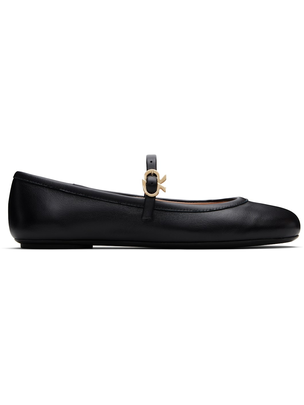Handcrafted nappa leather Mary Jane-style ballerina flats in black. · Pin-buckle strap with logo hardware at vamp · Grained leather lining · Rubber sole Supplier color: Black nappa Upper: leather. Sole: rubber. Made in Italy 252090F118005